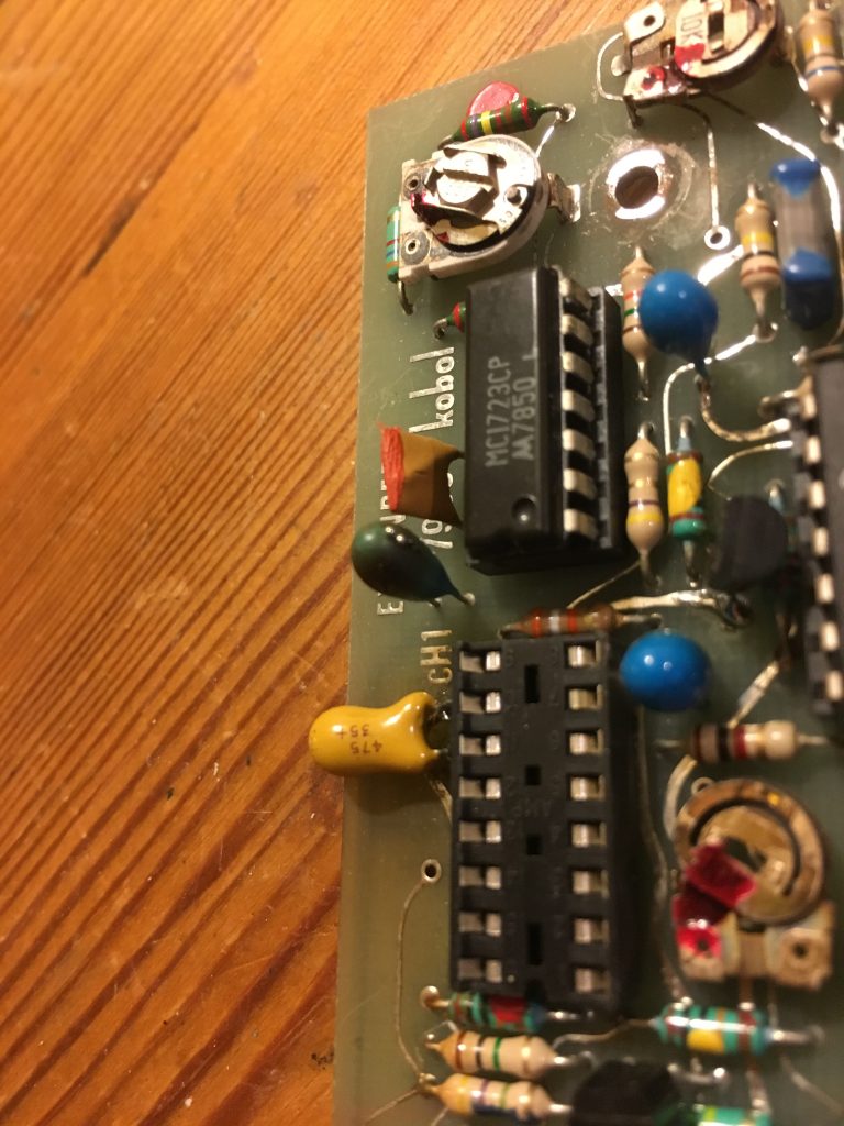 On Synthboard PCB – LM723 Rectifier & all Tants.
